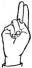 На ћирилици написано РУЖИЦА ВЕЛИМИРОВ састоји се из 15 слова [?]. Исписано ћириличном једноручном азбуком за глувонеме: